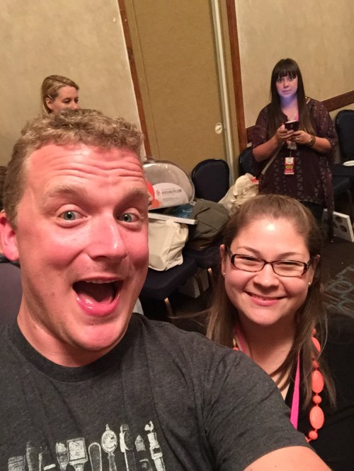 My volunteer shift was at the end of the conference where I handed out swag bags, and man that little room with zero airflow was HOT but it was a lot of fun, especially with Keeley who kept humor around for us to enjoy. After that we worked hard, breaking down and cleaning up the entire conference, it was a blast! Here I am in the gift bag corner.